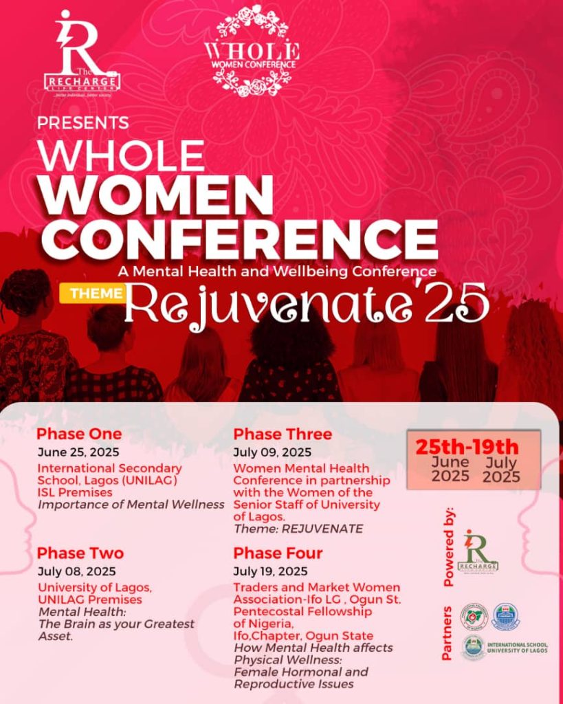 The Whole Women Community and Recharge Life Centre has announced that preparations are in top gear for its 2025 edition of the annual REJUVENATE Wellbeing and Mental Health Conference & Roadshow, scheduled to hold from June 25 to July 19, 2025, across multiple locations in Nigeria.