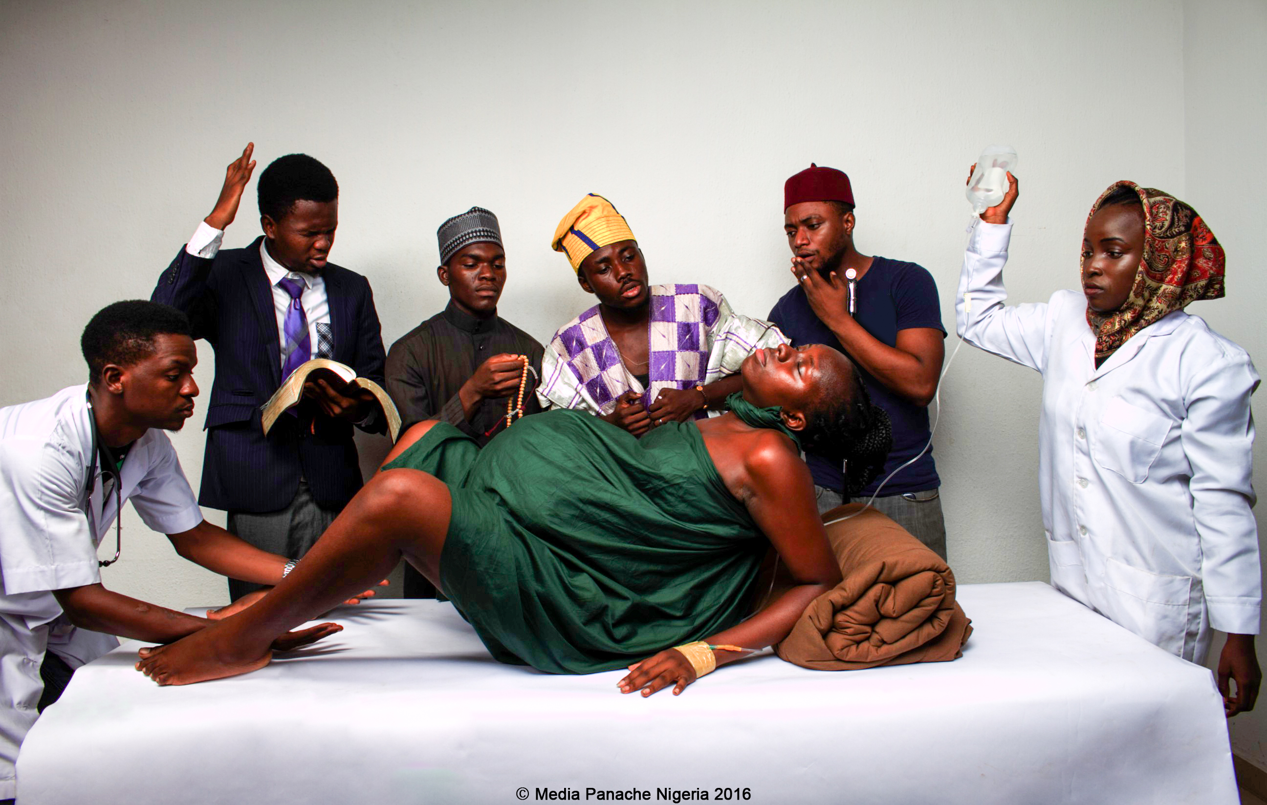 The analogy in the photo mirrors the present embittering state Nigeria has been in the whole of 2016 – but despite the unfavourable condition, we as Nigerians, regardless of the tribe; come together to support our beloved nation; hence the small assembly gathered around the labouring lady.