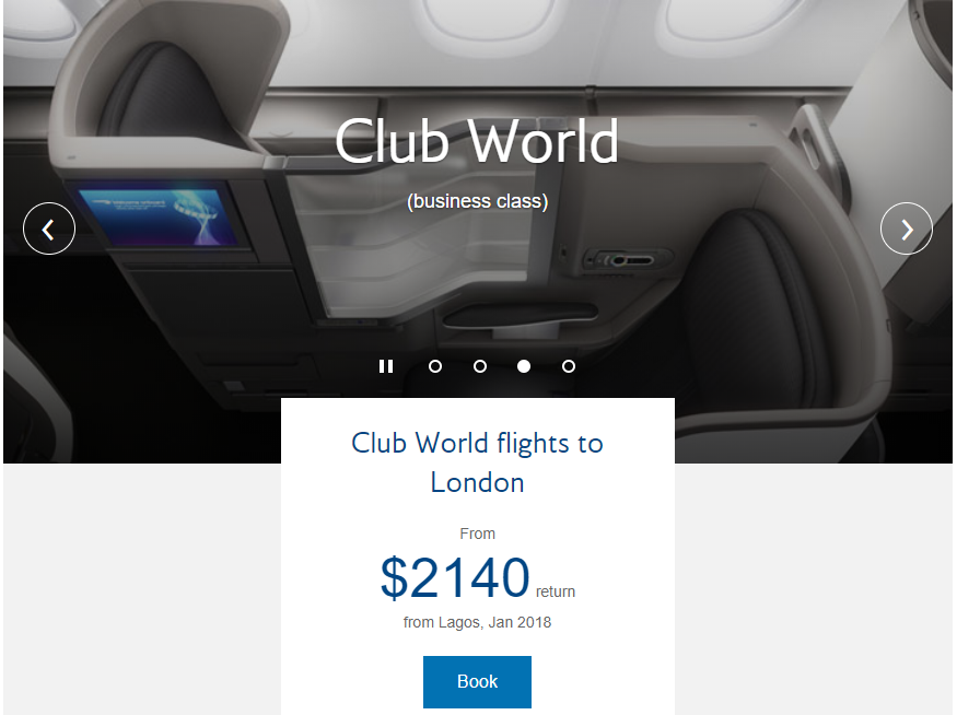 Bookings for the British Airways fantastic fare for Business Class travellers can be made on www.ba.com or by contacting designated travel agents. British Airways is absolutely committed to an unswerving delivery of exceptional experiences that appeals to the travel savvy individual.