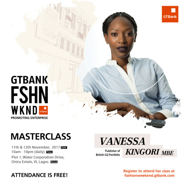 On the 11th and 12th of November 2017, Vanessa Kingori will be at the GTBank Fashion Weekend Masterclass to share her vast knowledge on the global trends shaping fashion.