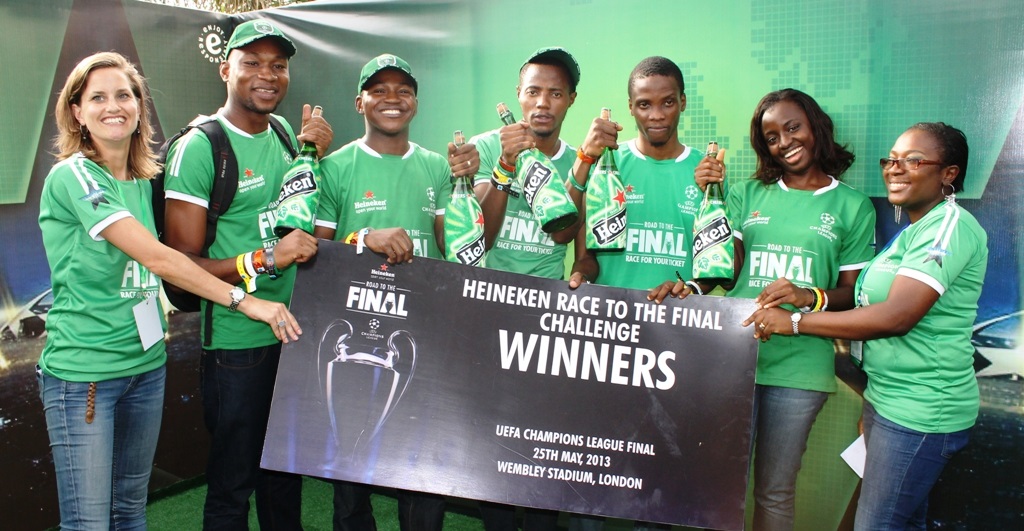 As the much anticipated UEFA Champions League Final holds on May 25, HEINEKEN®, worlds’ most international premium lager beer, will be sponsoring five Nigerians, Diana Nwajiaku-Smart, Isaac Onochie Ijeh, Mayowa Opeyemi George, Franklin Chukwu Ijeh and Felix Amobichukwu Nwafor to the UCL Final in Wembley, London. Through their inventiveness, ingenuity and resourcefulness these five Nigerians were able to win the HEINEKEN® race to the final challenge and an all-expense paid trip to watch the Final live at the Wembley stadium in London. The lucky winners proved to be exceptionally intelligent using their intellectual as well as the physical ability to outsmart 300 other participants in the HEINEKEN® race to the final challenge.