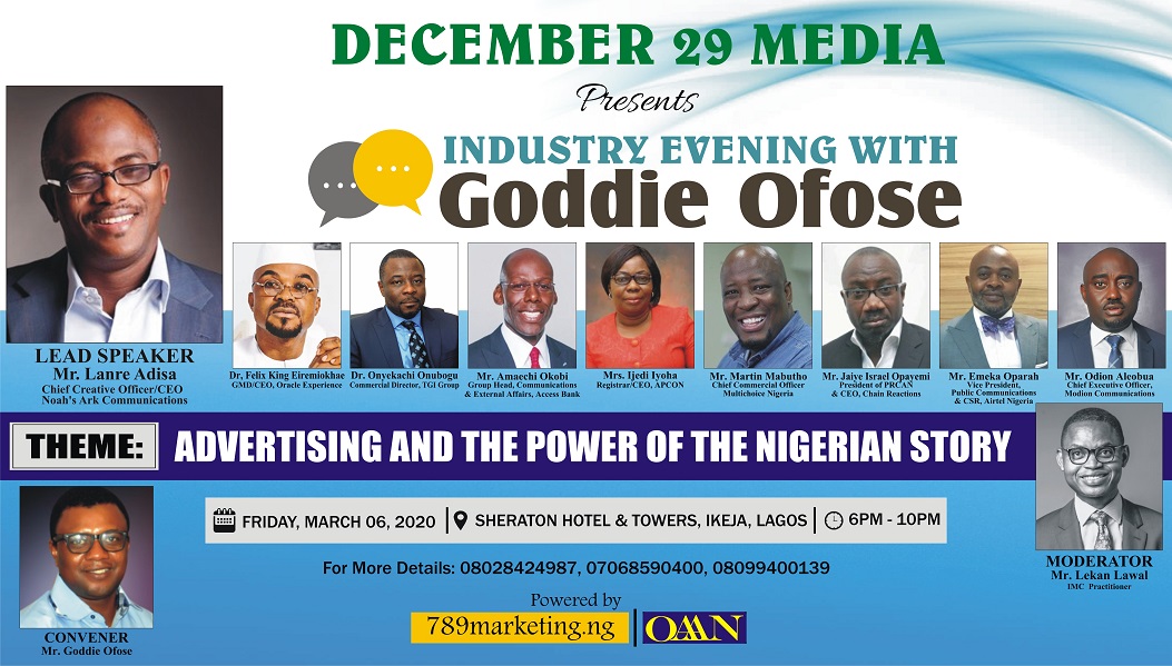 Imbued with the passion to massively accelerate growth in Nigeria’s marketing communications industry and propel all-round relevance of the industry in the country’s development, Goddie Ofose, one of Nigeria’s top brand analyst and journalist is convening an industry evening summit with the theme “Advertising and the Power of the Nigerian Story”.