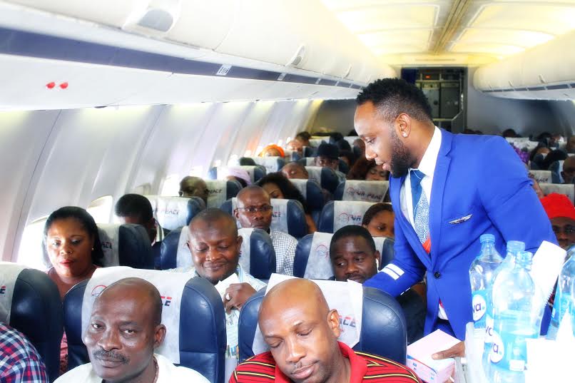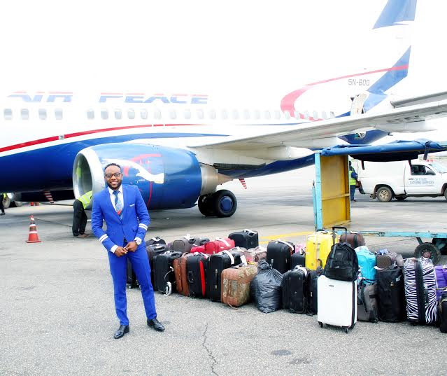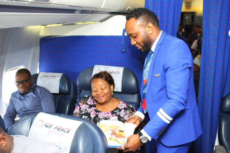 On Saturday October 24th, front line aviation company, Air Peace turned a year older and as part of it’s anniversary celebration, Five Star music act Kingsley Okonkwo aka Kcee who is the official brand ambassador of the airline was on board different routes as a cabin crew member where a lot of goodies were given out to lucky customers for their patronage over the last one year.