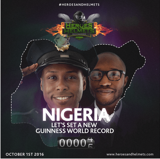 He explained that the #heroesandhelmets campaign plans to galvanise Nigerians, both at home and in the diaspora, during the upcoming country’s National Day on Saturday, October 1, 2016, to show their support for the Armed Force, notably the Army, Navy, Airforce, FRSC, NSCDC, among others, by supporting Out of Nigeria Adventure to set a record for the “Most self-portraits (selfies) taken in 24 hours.”