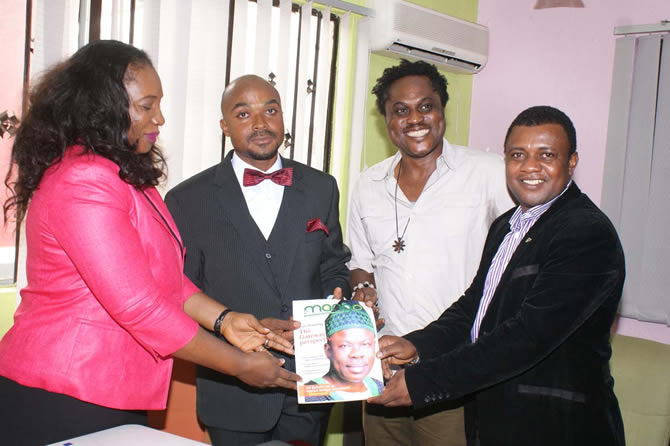 L-R: Mrs. Betty Okonoboh, General Manager; Mr Felix King; Eiremiokhae, MD/CEO; Mr Ororo Azemhbo, Creative Director, all of Oracle Experience and Mr. Goddie Ofose, Chairman, Brand Journalist Association of Nigeria BJAN during the presentation of BJAN magazine and best effort in innovative experiential Marketing award to Oracle Experience at the Company's Head office in Lagos.