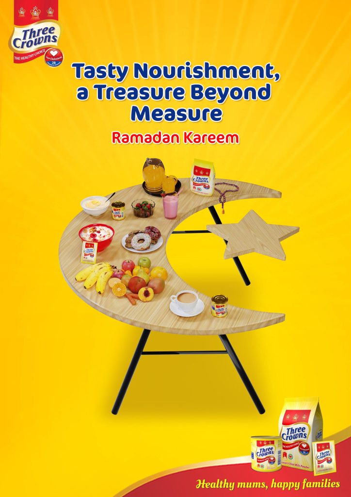 Speaking about the campaign, Marketing Manager Three Crowns Milk, Gloria Jacobs noted that abstinence from Sahur to Iftar during Ramadan is a religious requirement for all Muslims. In the evenings, families and friends come together for “Iftar”, where a vast array of delicacies is served to break the fast. Hence, food is the main and most affordable personal indulgence for Muslims during Ramadan. High-quality milk like Three Crowns is also a necessity during the fast because it provides low-cholesterol nourishment and nutrient replenishment. It should consistently be the preferred choice of dairy all through the period of fast as it helps to keep hearts safe whilst replenishing lost nutrients.