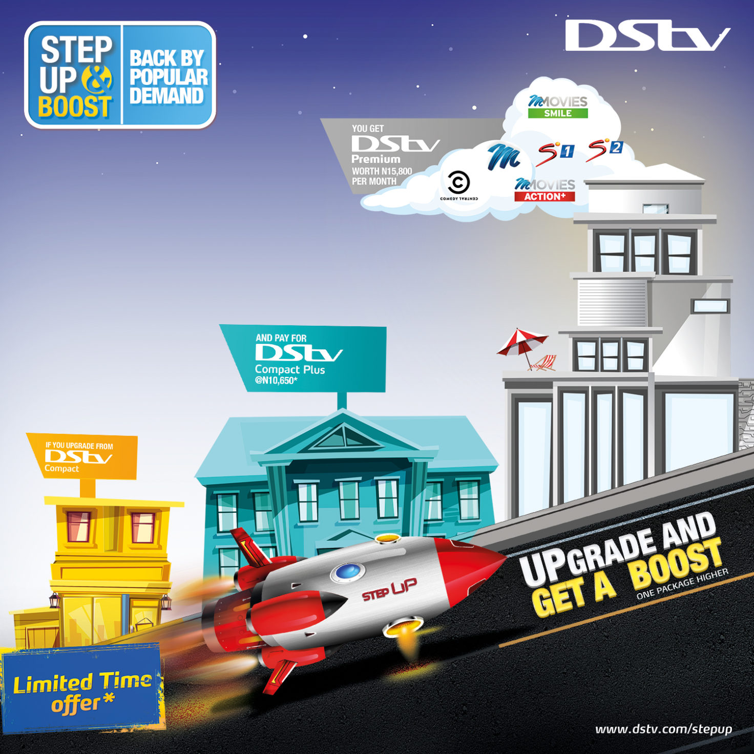 Visit www.dstv.com/stepup for more information and follow the conversation online with the hashtag #DStvStepUpBoost @DStvNg on Twitter and @DStvNigeria on Instagram.