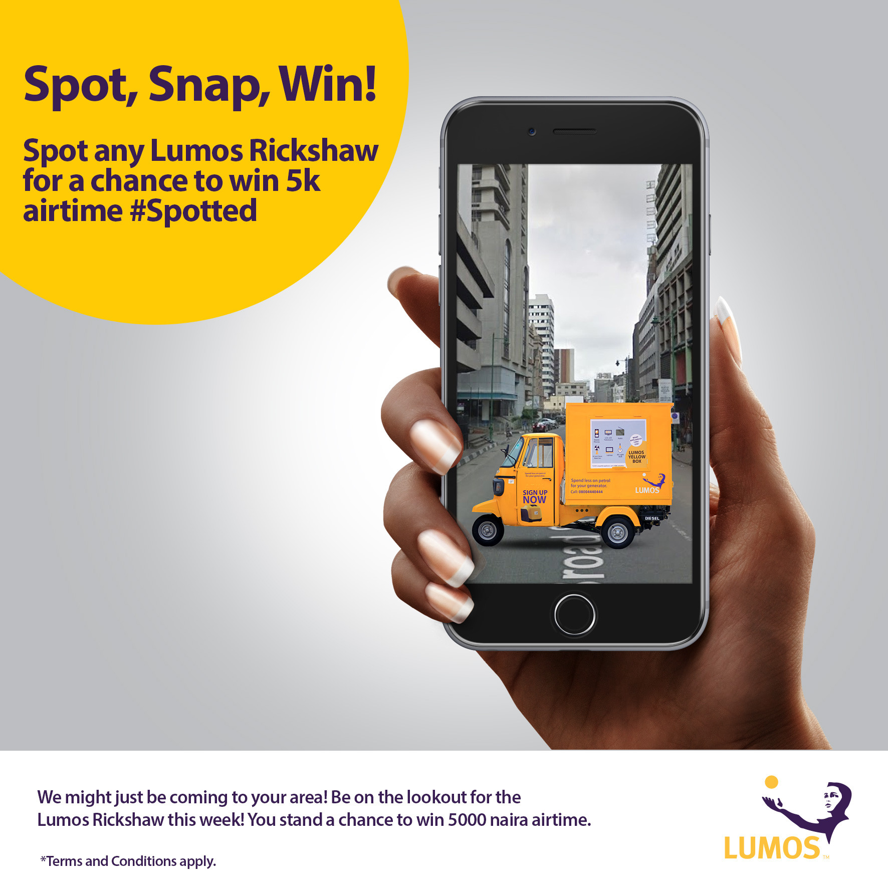 This January, stand a chance to win N5,000 worth of airtime when you spot the Lumos Rickshaw, in the #LumosRickshaw Spot and Snap contest!